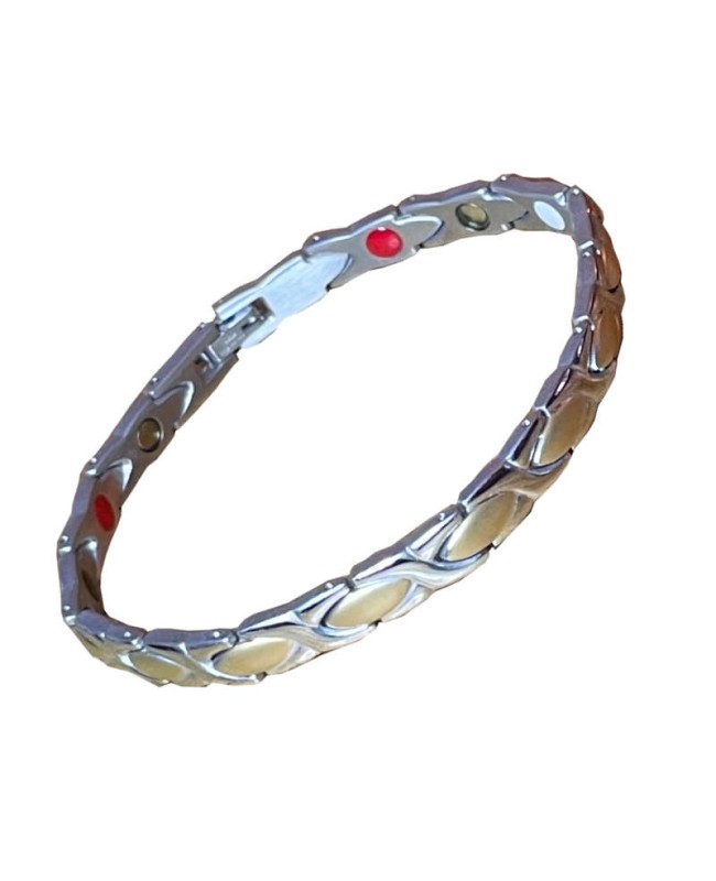 Le Bracelet Magnétique Adonis est un bijou raffiné mêlant élégance moderne et bien-être. Conçu en acier inoxydable de haute qualité, il présente une alternance harmonieuse d’inserts d'aimants et de bioéléments.