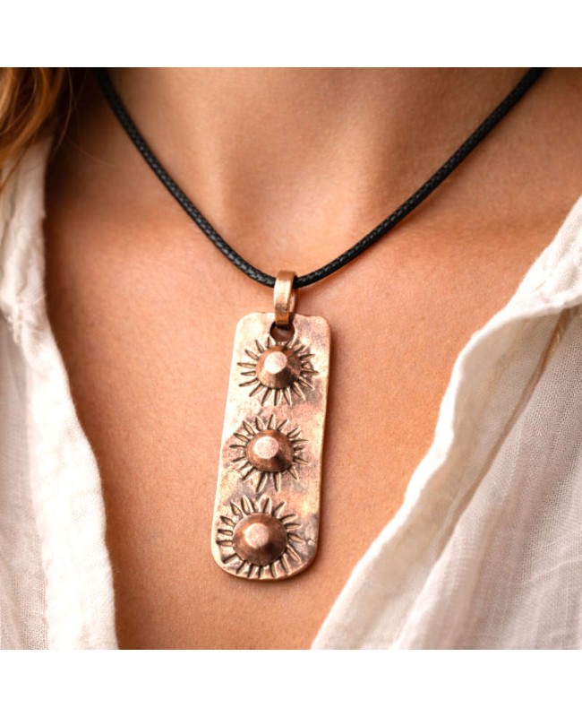 Porté au quotidien, ce pendentif en cuivre naturel se patine délicatement avec le temps, devenant un bijou personnel, authentique et durable.